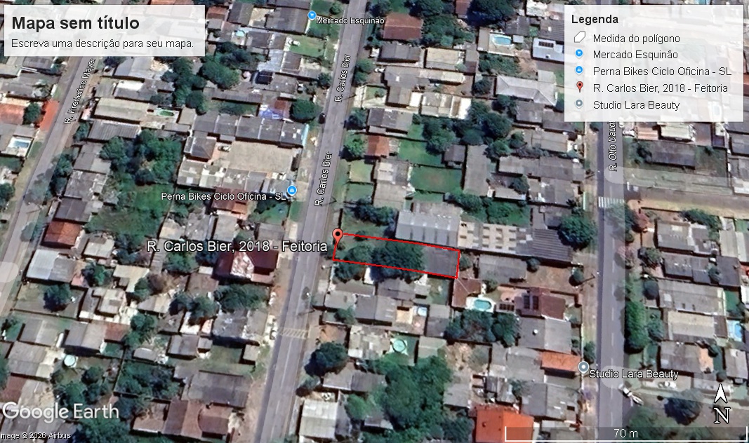 Um terreno situado nesta cidade, no Bairro Feitoria, lugar denominado VILA REAL FEITORIA, composto do lote 08 da quadra 1.613 da planta geral da cidade, quarteirão formado pelas ruas Carlos Bier Otto Daudt, "C" e "D", medindo 10,00 metros de frente, a oeste, no alinhamento da rua Carlos Bier e igual metragem na face oposta, a leste, a entestar com o lote 31 da Loteadora Real Feitoria Ltda., prometido vender a Rocha de Andrade, por 40,00 metros de extensão da frente aos fundos, por ambos os lados, dividindo-se por um lado, ao norte com o lote 09 e pelo outro lado, ao sul, com o lote 07, ambos da Loteadora Real Feitoria Ltda., distante esta última face 72,00 metros da rua "C". Observação: o imóvel fica localizado na Rua Carlos Bier, 2018, São Leopoldo/RS. Ônus: nada consta. Matrícula nº 17.961 do Ofício do Registro de Imóveis da Comarca de São Leopoldo – Livro nº 2 – Registro Geral. Avaliação: R$272.603,00 (duzentos e setenta e dois mil, seiscentos e três reais).